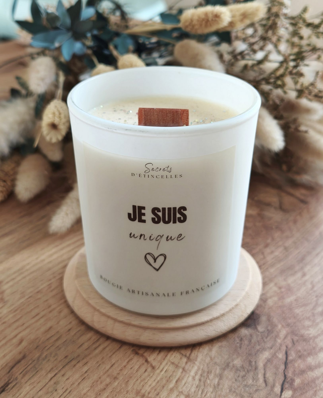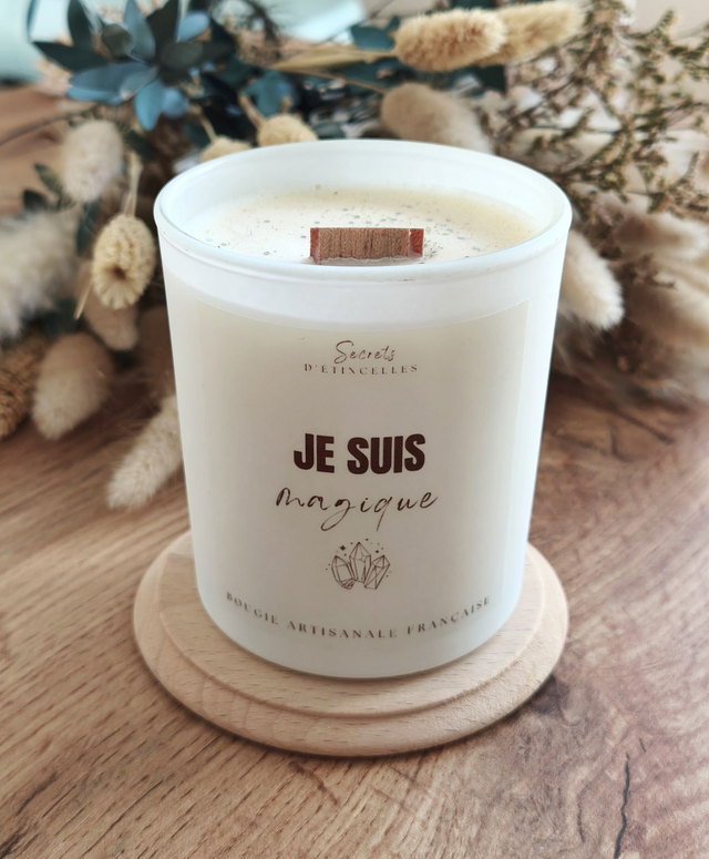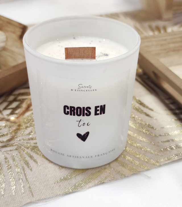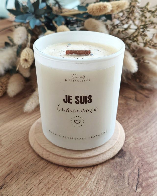 Coulée dans son élégant contenant en verre blanc, la bougie « message » est accompagnée d’une étiquette avec un message positif, pensé comme une intention à poser au quotidien. Une invitation à se reconnecter à soi, à cultiver la confiance et à faire rayonner de belles énergies ✨