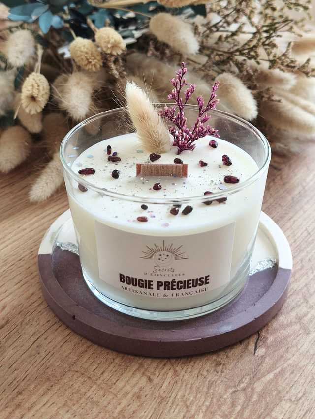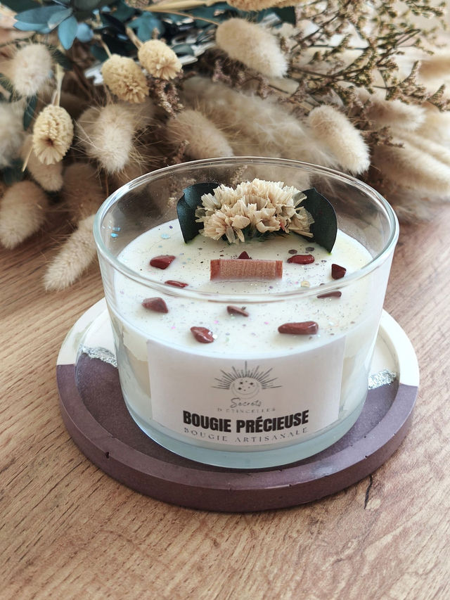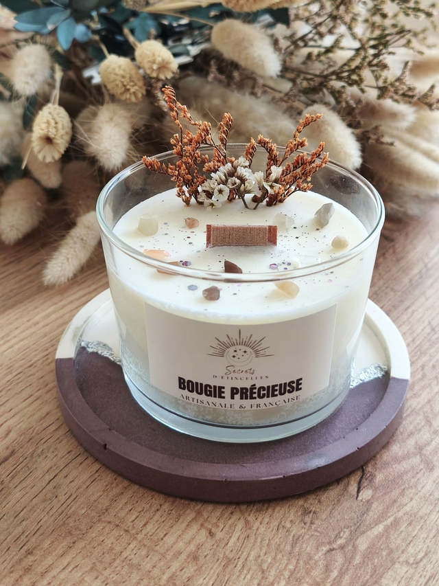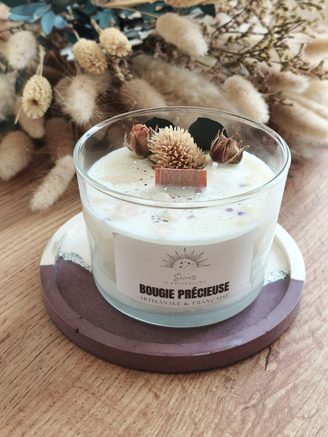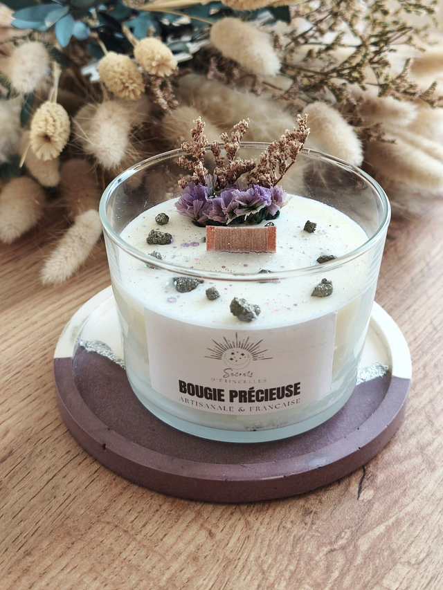 Coulée dans un contenant en verre transparent, la bougie « précieuse » offre une ambiance apaisante et chaleureuse tout en apportant élégance dans votre intérieur. Une bougie pensée pour les moments de calme, de recentrage et de douceur. Chaque pièce est unique, créée de manière intuitive selon l’inspiration du moment ✨