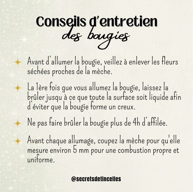 Chaque bougie est réalisée à la main, des variations de couleur ou de décoration peuvent exister, sans altérer la qualité du produit.