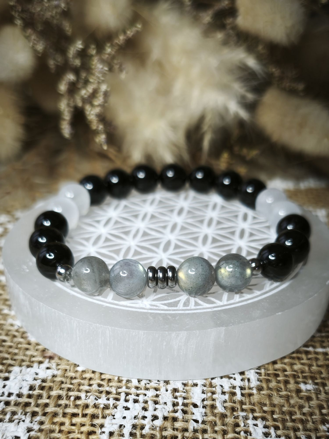 Ce bracelet agit comme bouclier énergétique, à la fois protecteur, équilibrant et purifiant. Il protège des énergies extérieures et purifie l'aura. Idéal pour les personnes sensibles et empathiques. Un allié précieux pour avoir sérénité et stabilité.