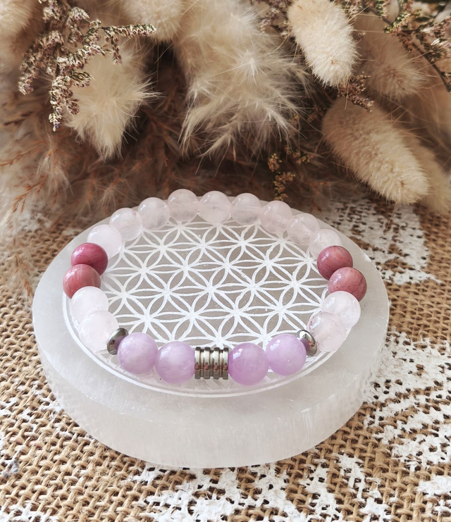 Ce bracelet est un soutien énergétique pour le cœur. Il accompagne les personnes qui souhaitent s’aimer avec plus de douceur, guérir les blessures émotionnelles et ouvrir leur cœur à un amour plus conscient, plus juste et plus aligné. Une invitation à se choisir, à s’honorer et à laisser circuler l’amour sous toutes ses formes.