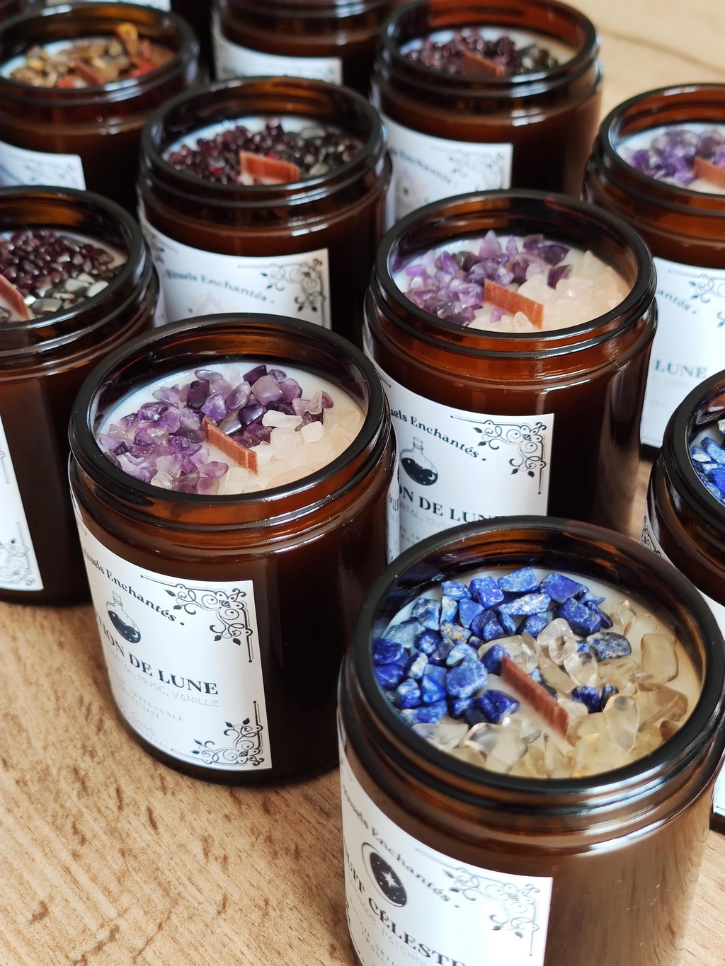 Toutes les bougies sont créées avec soin et en conscience dans mon atelier dans l’Aude. J’ai à cœur de sélectionner des matières premières et des matériaux de qualité.